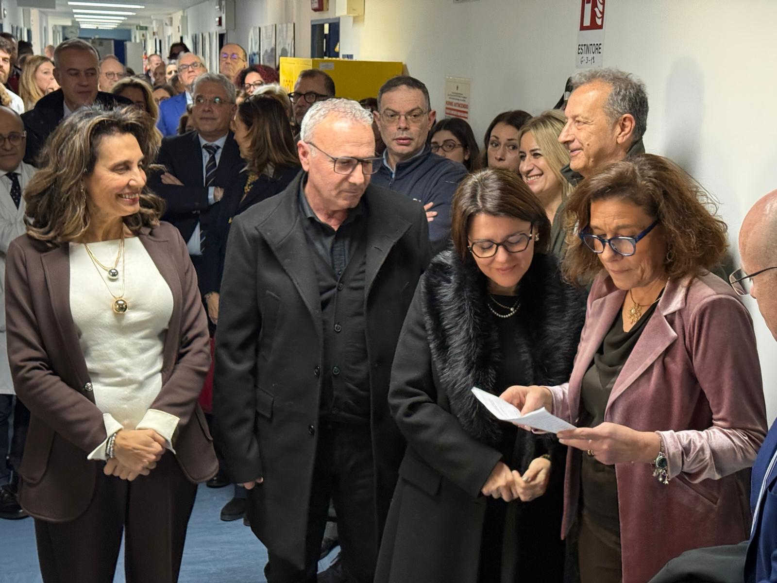 Alla cerimonia di oggi erano presenti la mamma Cetti e il papà Alessandro. Ad accoglierli, insieme al Direttore Amministrativo Dott.ssa Elvira Amata, la Rettrice Prof.ssa Giovanna Spatari, il Direttore Sanitario Giuseppe Murolo, la responsabile dell’Unità di Igiene Ospedaliera Prof.ssa Pasqualina Laganà e tanti operatori sanitari e amministrativi.