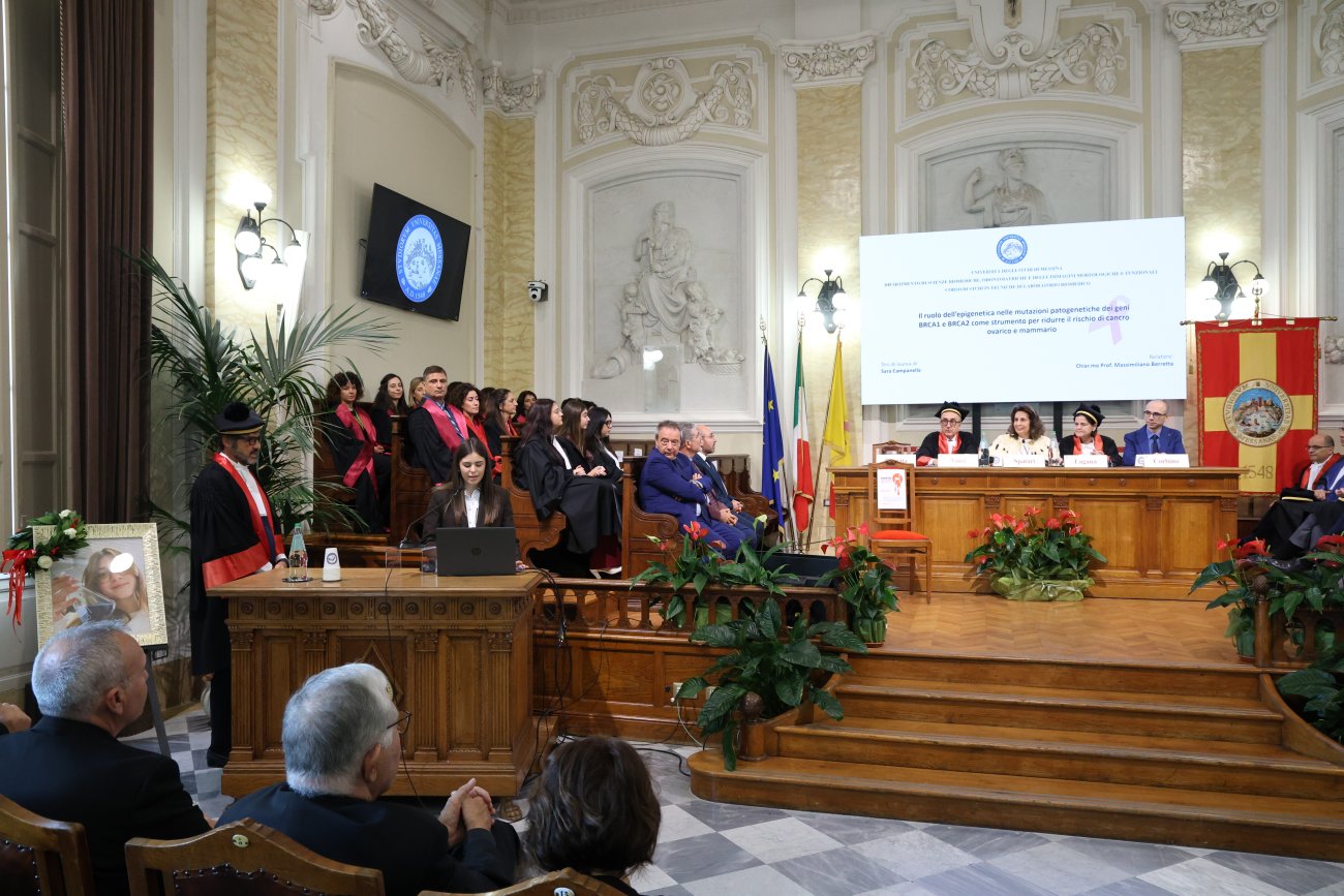 L'Università di Messina ha ospitato, stamane, la seconda delle due giornate dedicate alla memoria di Sara Campanella, studentessa del Corso di Laurea triennale in 'Tecniche di Laboratorio Biomedico', vittima di femminicidio lo scorso mese di marzo. Nell'Aula Magna del Rettorato, è stata conferita la Laurea alla memoria della ragazza originaria di Misilmeri, alla presenza dei familiari, della Rettrice, prof.ssa Giovanna Spatari, dei proff. Sergio Vinci (Direttore Dipartimento BIOMORF), Massimiliano Berretta (Relatore che Sara aveva scelto per la sua tesi), Pasqualina Laganà (Coordinatrice del Corso di Laurea), del dott. Fabio Corbino (Presidente Nazionale dell'Ordine dei Tecnici di Laboratorio Biomedico), di 35 colleghi di Corso, tra cui la studentessa Martina Giandinoto (che ha esposto la tesi della giovane), dei docenti del CdL, di vari esponenti della comunità accademica e di diverse autorità civili, militari e religiose riuniti per un momento di riflessione e raccoglimento.
