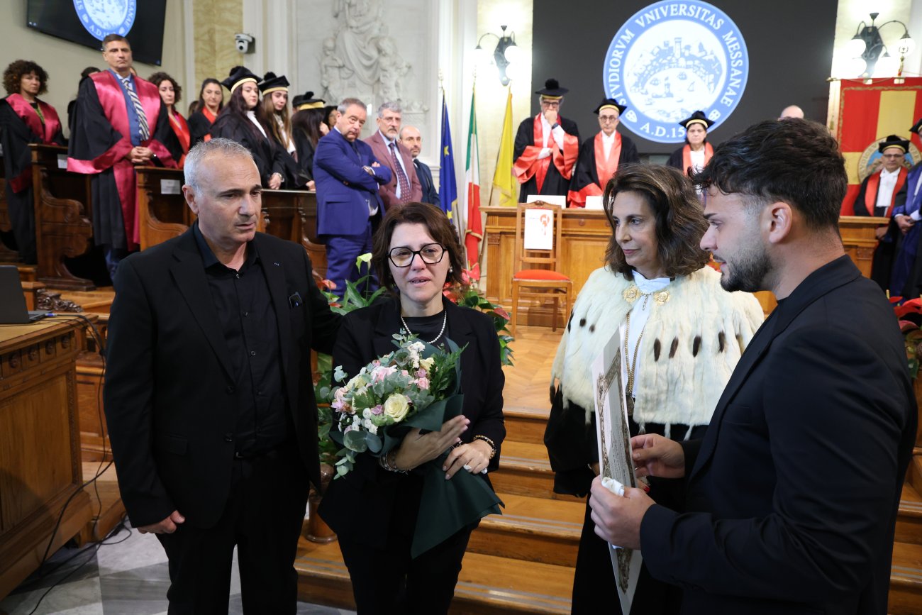 " Oggi ci troviamo in quest'Aula Magna - ha affermato la Rettrice, prof.ssa Giovanna Spatari – per un momento di profonda riflessione collettiva che unisce tutta la comunità accademica alla famiglia di Sara ma, soprattutto, ci consente di conferire alla nostra giovane studentessa ciò che merita, ovvero, la Laurea triennale in 'Tecniche di Laboratorio Biomedico'. Quanto accadutole rappresenta un immenso dolore che pervade tutti noi e questo conferimento non è solo un atto simbolico ed etico, ma anche la giusta conclusione di un percorso che testimonia l'impegno, la preparazione, la dedizione e la bravura di Sara. Lei era una ragazza brillante, empatica, integra, con la vocazione alla cura dell'altro, qualità che esprime l'essenza stessa delle professioni sanitarie. Gli Atenei, luoghi di crescita e di incontro per eccellenza, non possono essere estranei al tema della violenza di genere, fallimento culturale capace di insinuarsi ovunque che va contrastato non solo con la formazione, ma anche con l'esempio quotidiano. La cultura non può bastare se non diviene consapevolezza e riconoscimento della dignità dell'altro, responsabilità condivisa da tradurre in gesti concreti. In sinergia con l'Assessorato all'Istruzione della Regione Siciliana, verranno presto bandite delle borse di studio dedicate a Sara e destinate a premiare la carriera di studenti meritevoli e di laureati che abbiano affrontato nella propria tesi di Laurea i temi del femminicidio e della violenza di genere. In questo modo sarà possibile stimolare la ricerca scientifica sull'argomento e veicolare modelli culturali e comportamentali positivi. Quanto avvenuto a Sara si lega, indissolubilmente, a quando successo a Lorena Quaranta il cui ricordo resta impresso nelle nostre menti ed a cui la il precedente Rettore aveva programmato di intitolare il Cortile del Rettorato. Ebbene, in base a quanto deliberato nei giorni scorsi dagli organi collegiali, il Cortile porterà i nomi di Sara e di Lorena. Sarà un luogo di incontro, ma anche di memoria per ricordarci di fondare le nostre relazioni sul rispetto reciproco. Oggi Sara taglia il traguardo della Laurea, tutti noi siamo vicini ai familiari, agli amici, ai colleghi, nella speranza che politiche concrete di contrasto ci permettano di non dover più organizzare iniziative come questa".