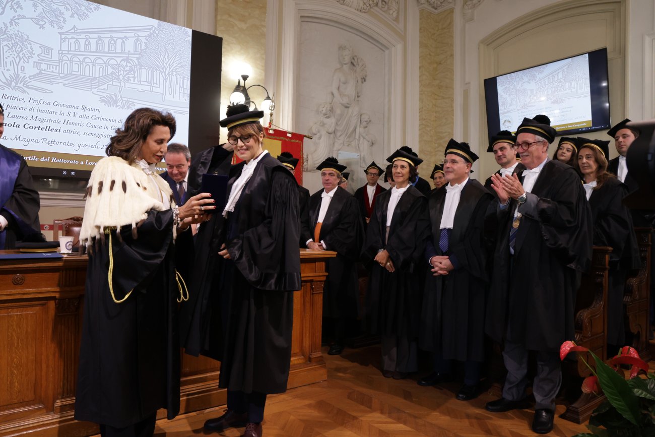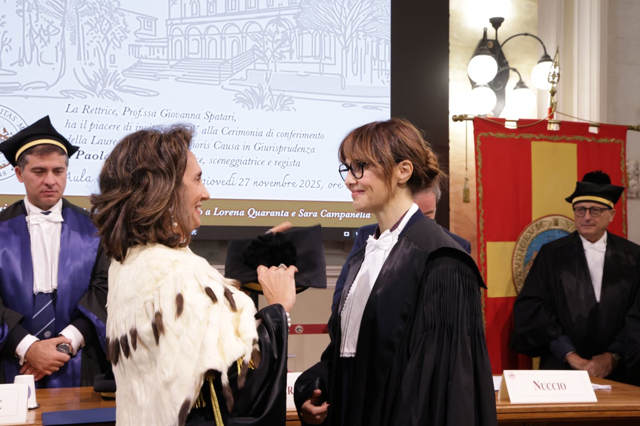 Con il conferimento del titolo ad honorem, l’Ateneo ha voluto valorizzare il contributo che l’artista ha saputo offrire al dibattito civile e culturale del Paese. In particolare, con il film “C’è ancora domani”, Paola Cortellesi ha affrontato con grande sensibilità temi centrali della storia repubblicana, mettendo in luce il rapporto tra diritto, società ed emancipazione femminile. Con il suo lavoro, inoltre, dimostra come il linguaggio cinematografico possa incidere sulla coscienza collettiva più di quanto riescano talvolta altri strumenti di divulgazione, parlando alle nuove generazioni con una forza empatica e una chiarezza narrativa capaci di stimolare una riflessione su temi giuridici complessi.