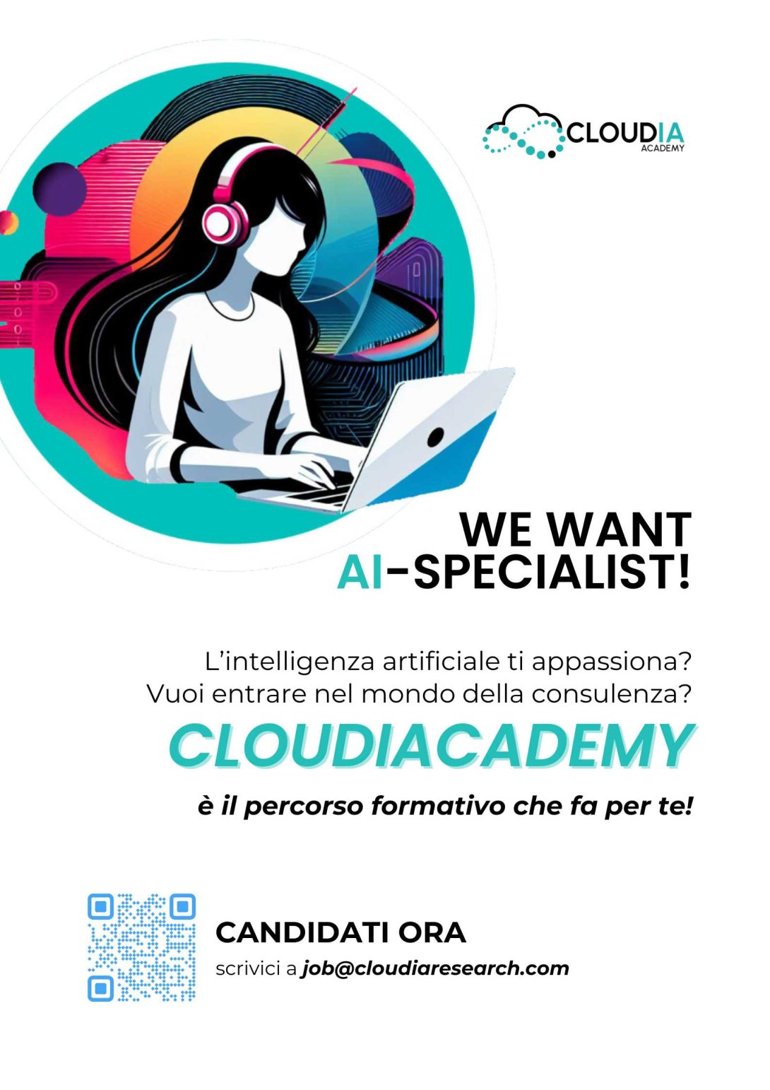 Per candidarti ti chiediamo di inviare il tuo CV a job@cloudiaresearch.com indicando nell'oggetto della mail "Academy AI".